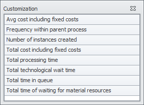 The Process statistics tab gives you an overview of the simulated processes statistical data. The process properties are displayed in the form of horizontal bars that helps to find the most expensive and longest processes easily.