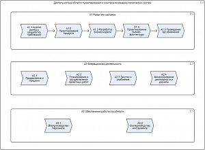 IDEF0 is considered to be one of the most popular notations used to describe business processes and functions. It is based on SADT principles. IDEF0 is a graphical notation used to create a functional model that displays the system structure and functions, as well as flows of information and material objects that link these functions (see the figure for an example of the IDEF0 diagram developed in the Business Studio software. Business Studio contains all the necessary functions for the proper design of IDEF0 diagrams). The components of the IDEF0 syntax are boxes and arrows. Boxes represent functions, arrows represent data or objects related to functions and external environment.